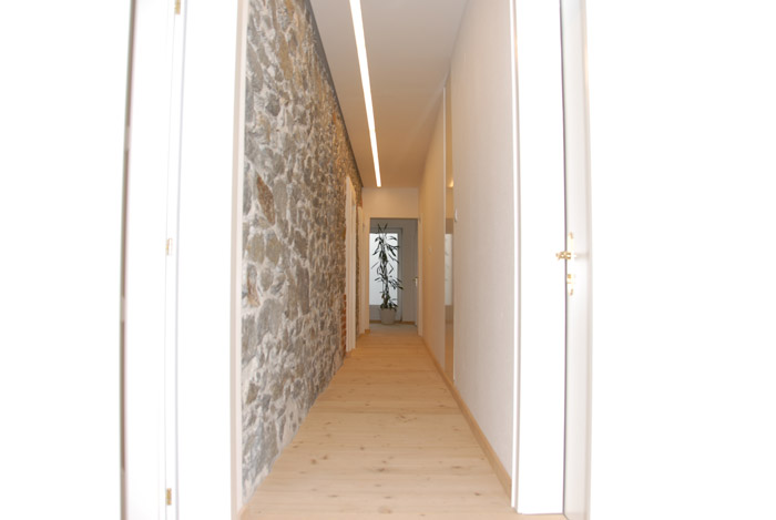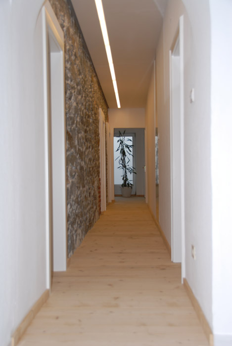 CorridorDer "Corridor" der Zimmer, weit über hundert Jahre alte Steinmauer und Holzboden. |